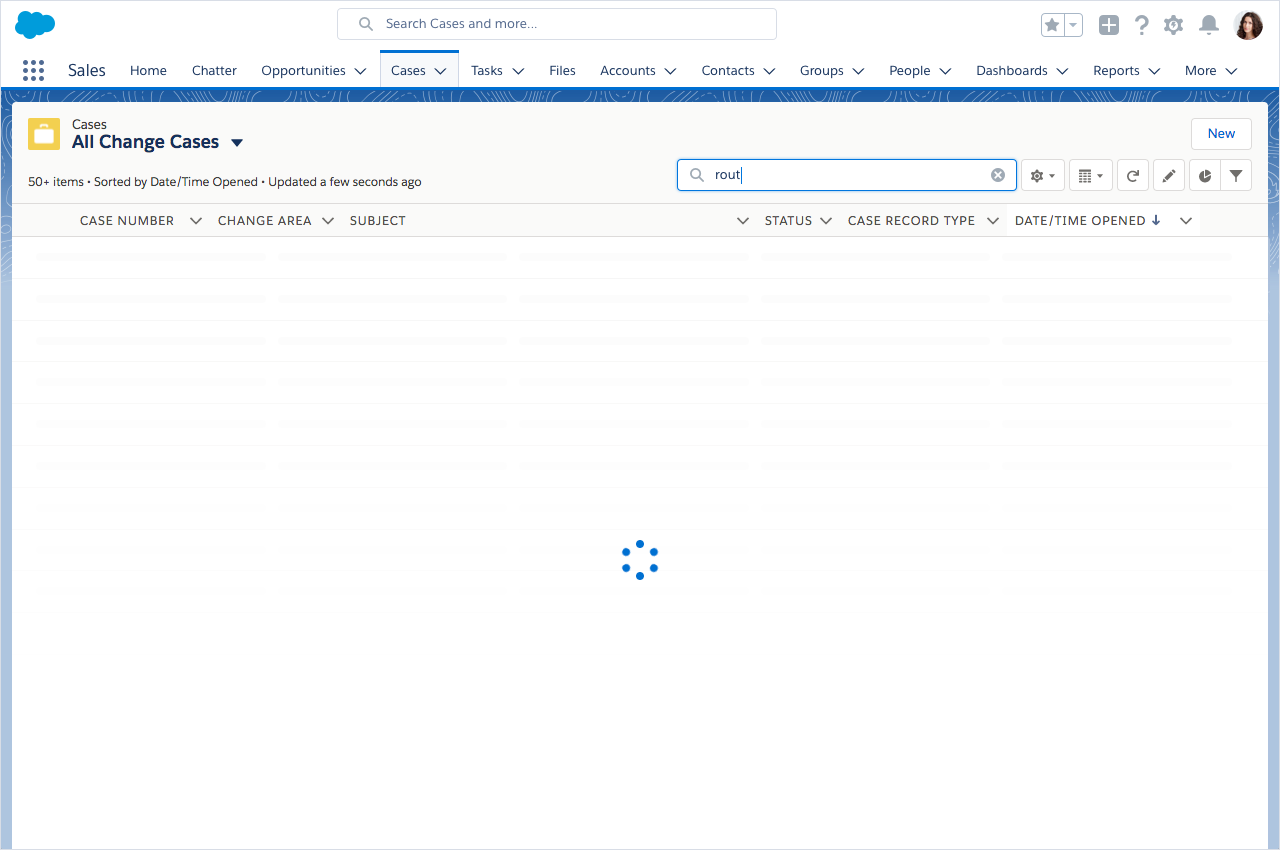 The search input takes on the active styling, and since we're refining a list of information already on the screen, an autocomplete menu isn't necessary to display.